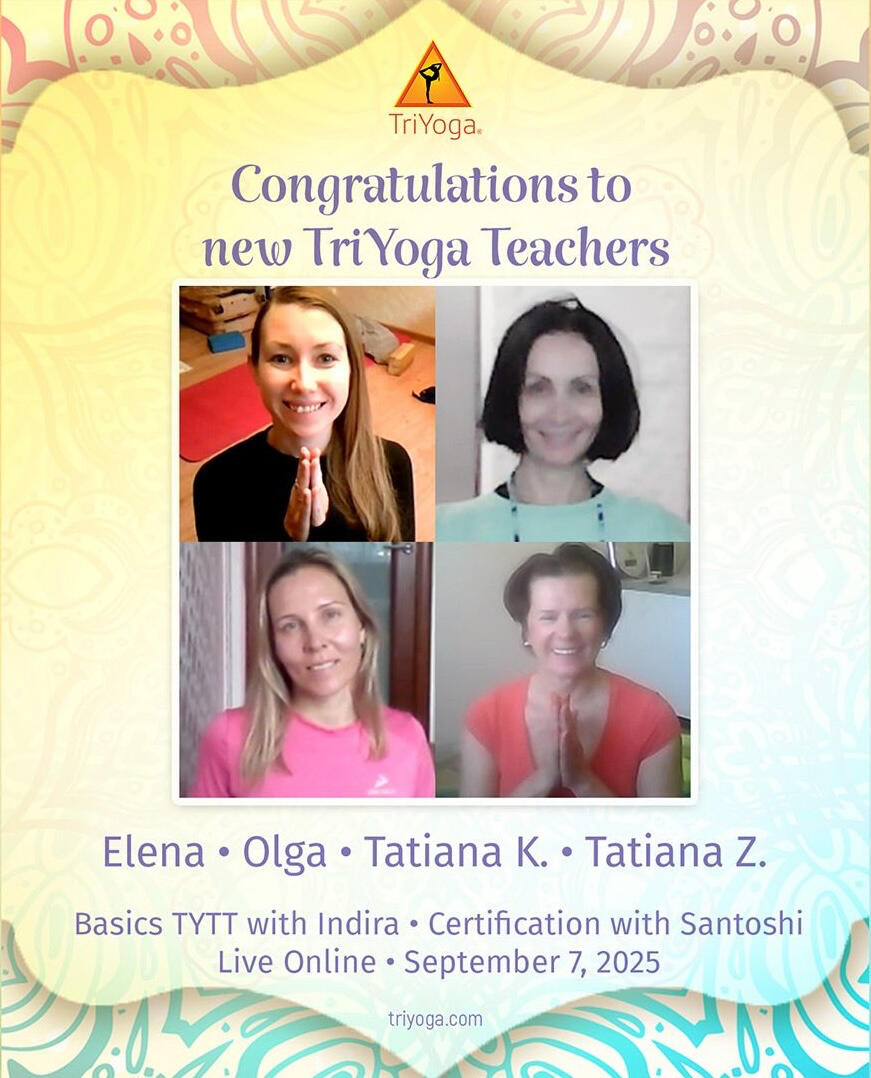 "At the end of September, a group of six TriYoga flow-ers met for the inaugural Scoliosis Wellness Journey led by Theresa. Four participated in person at the new space built for TriYoga® near Theresa's home in Spring Mills, Pennsylvania. The online satellite group signed on from Rochester, New York.Students spent the weekend understanding scoliosis more deeply, including how their lateral curves contribute to rotation of their vertebrae. The group explored alignments and helped each other see asymmetries until everyone in the group could identify their curve pattern. Students created self portraits and presented these to the group. Through padding, props, breathing practices, deep relaxation, and heartfelt community of support the flow-ers softened into a more relaxed state of being.The final session of the weekend was TriYoga Therapeutics for Scoliosis. With their newly gained knowledge, each student was able to refine the asanas to create better balance within their scoliosis. The students were full of gratitude for the new understandings and their experience of having less pain. The gift of the Scoliosis Wellness Journey was summed up as the last student headed out the door saying, "Thank you. I feel better already."~ Theresa